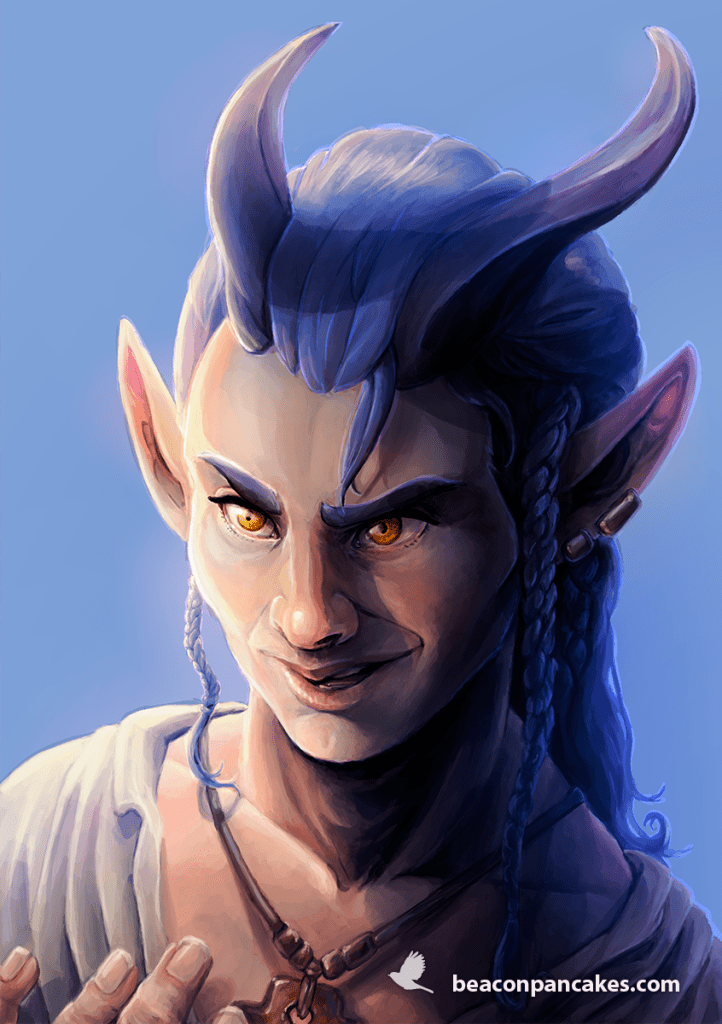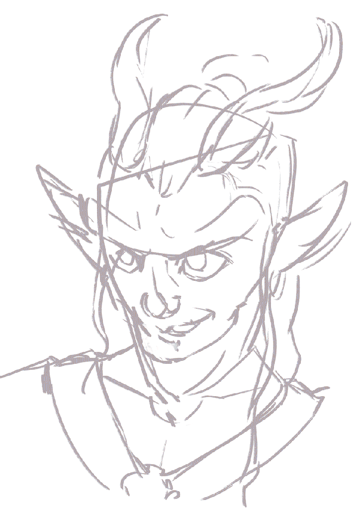 This one is my last drawing, and I am fairly happy with it! At first, I wanted to create a character with realistic lighting because lately, I have been thinking a lot about the effect of sunlight on the skin. I wanted a vibrant, saturated, and strong play of light and shadow. But I was also looking forward to working with lines. The character didn’t need to be a little stylized; I just wanted a realistic light. I started drawing, and the idea of the character comes quickly to my mind: a suspicious man with a fantasy-like appearance. For me, he was a tempter, almost like a half disguised demon trying to entice someone.
