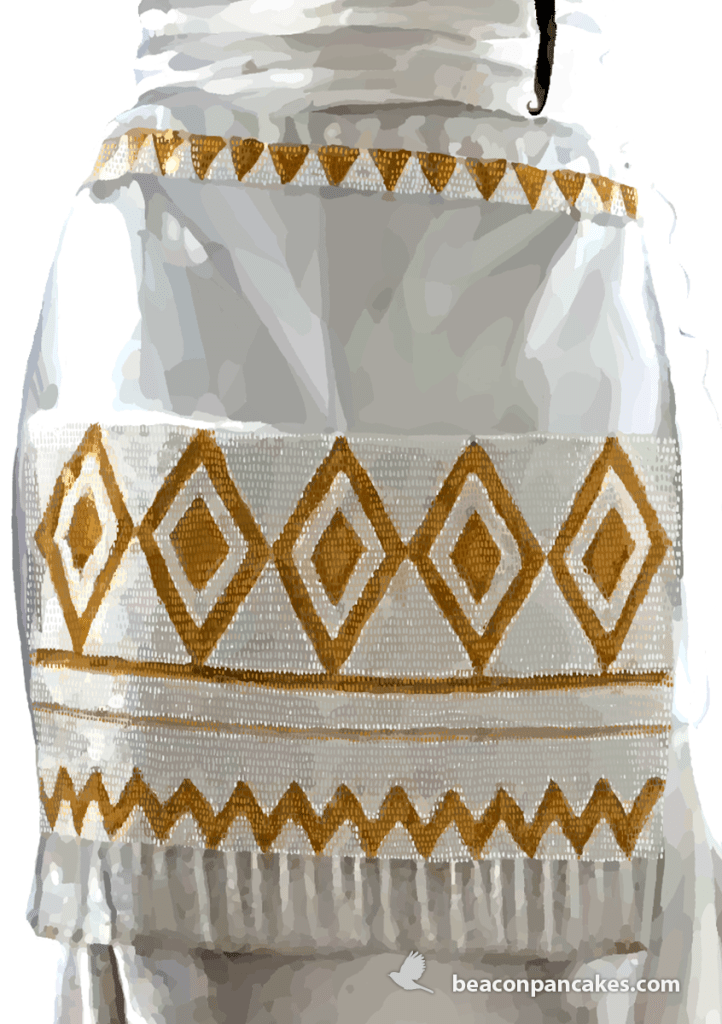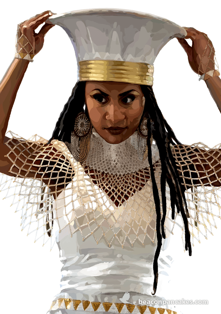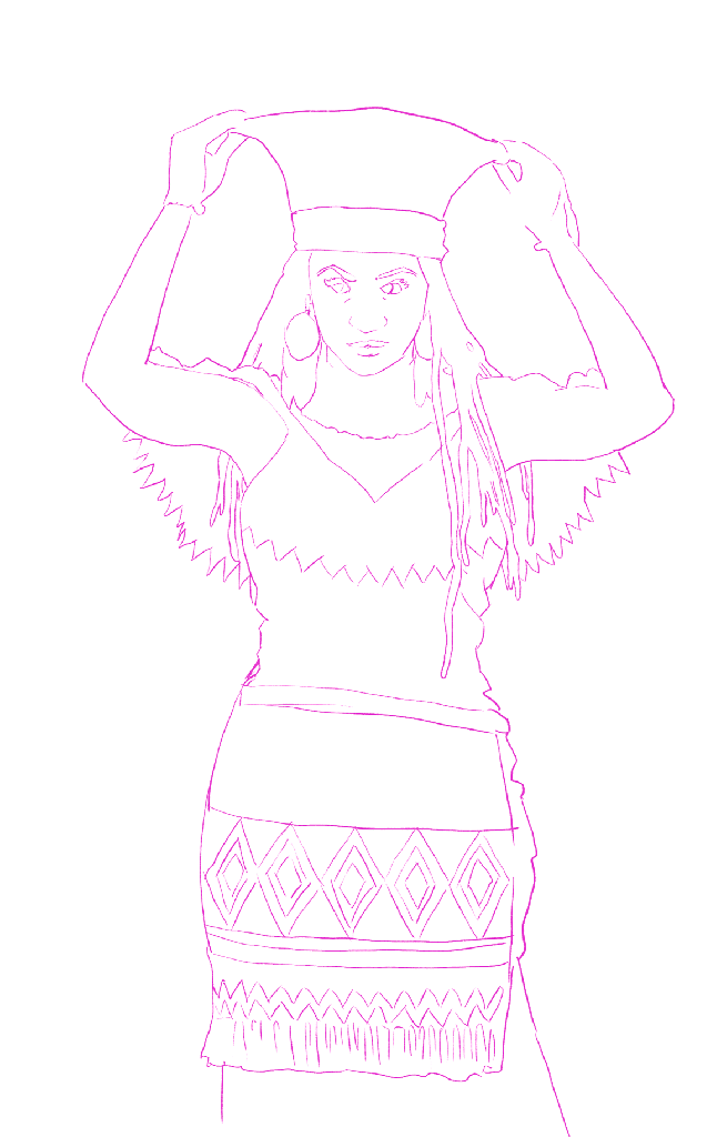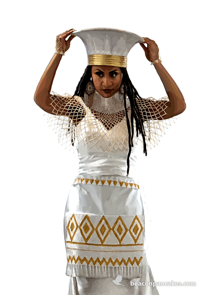 Some months ago, I could go to an African Art, Jewelry and Culture show in an Art Center. I was excited to see paintings, sculptures, weaved baskets, beautiful dresses, and many handmade crafts. I didn’t expect that they had even prepared a fashion show! Professional models wore traditional jewelry with traditional clothes from Tanzania, South Africa, Kenya, Burkina Faso, Mali, Congo, and more countries I cannot remember. It was astonishing and inspiring, and I took the opportunity to take some pictures with my phone. They were perfect references for drawings! So I chose one of them that I especially liked, and I started to think about how to turn it into a drawing.
