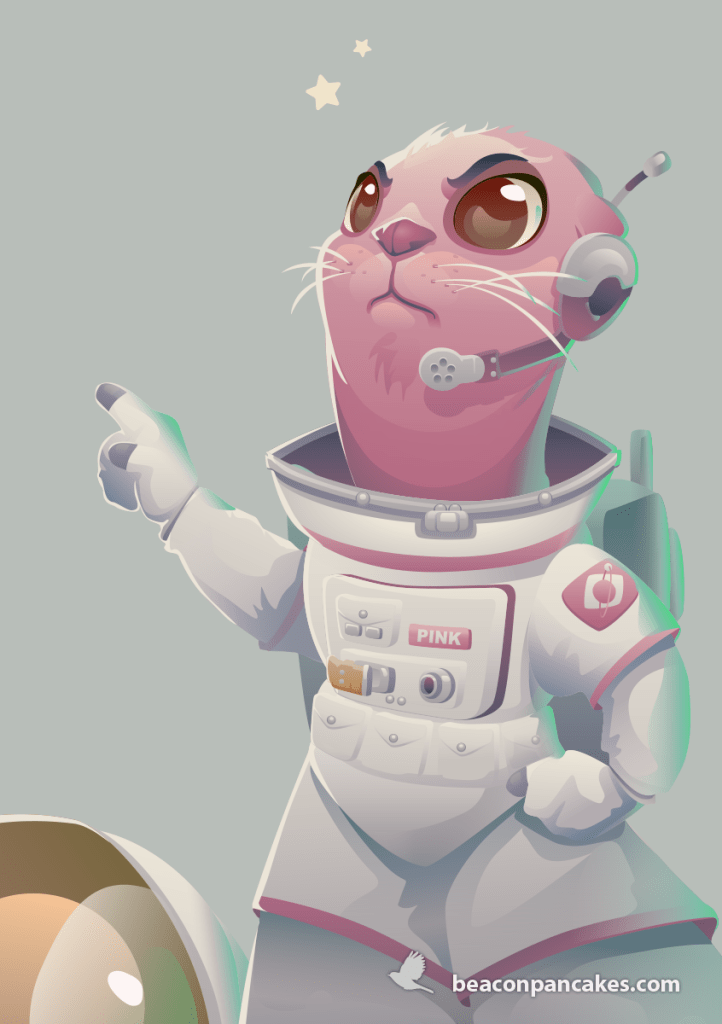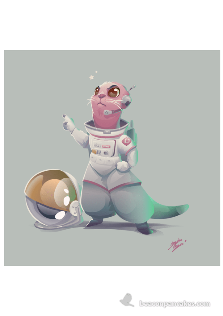 I made this funny illustration in Adobe Illustrator of an astronaut pink otter called Captain Astro Pink. It started as a quick sketch, but I ended up adding more details. The drawing was quite fast because I simplified many of the shadows and lighting, and I think it all worked very well.