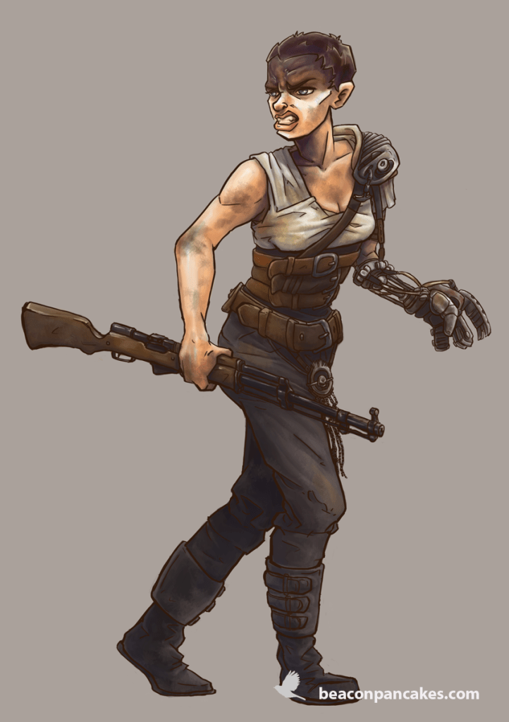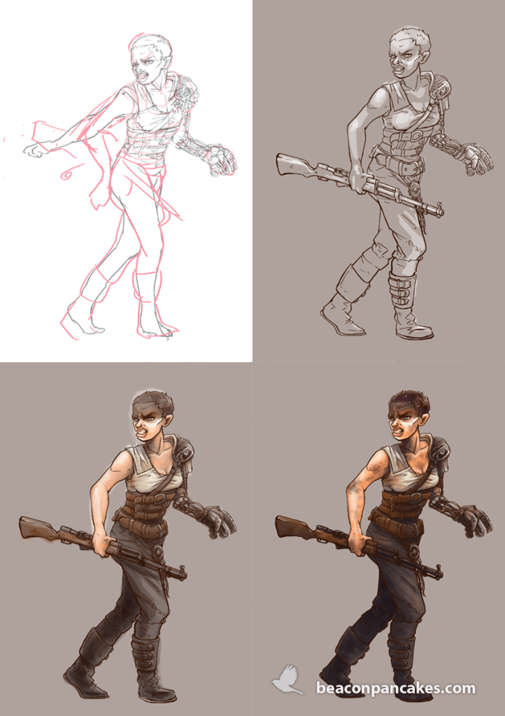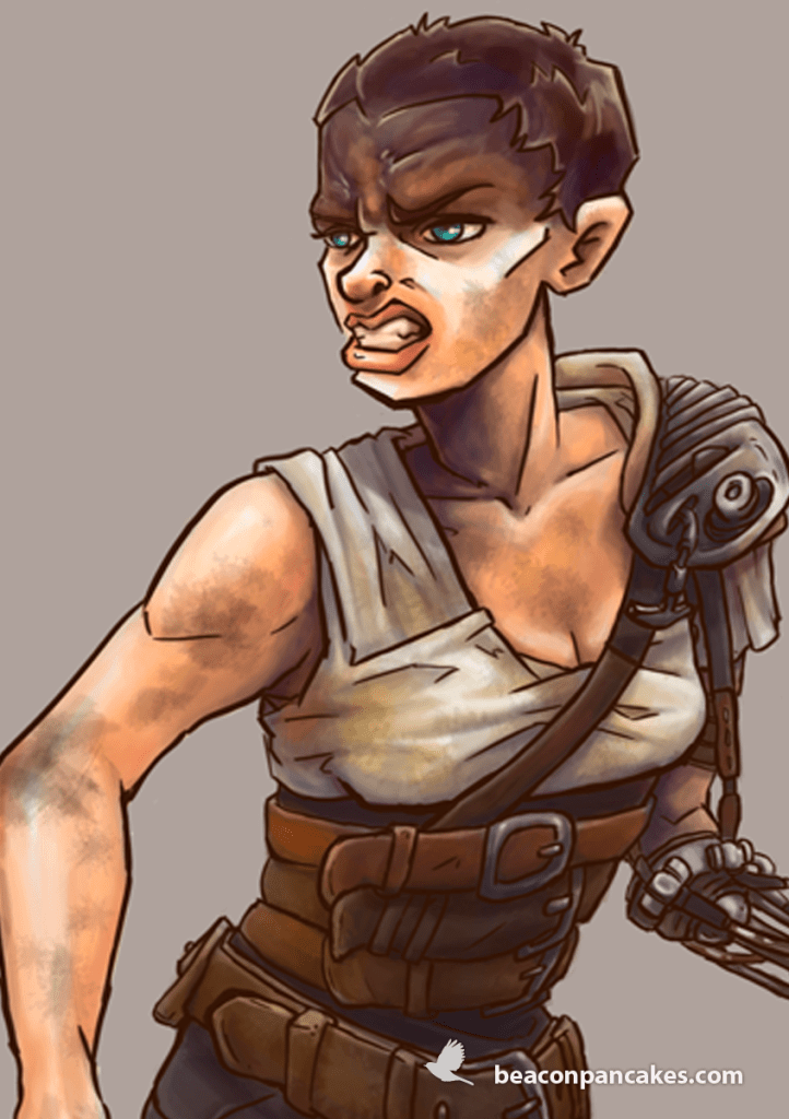 I don’t use to make fan art for every film I see. But when I saw Mad Max: Fury Road, it impressed the hell out of me. I liked it so much; I remember looking for information about the cast, and art books, reading everything I could, and sketching in my drawing bloc. There was where this fan art of the best character –Imperator Furiosa– was born. First with pencil and later redo and corrected digitally in Adobe Photoshop. I enjoyed very much this drawing, especially the line, but I also had a good time searching for references.