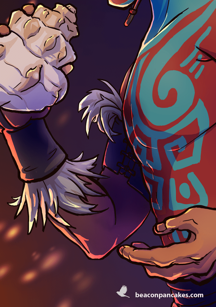 I decided to use a strong line and some flat colors. The line took time because the design was elaborate, but I liked working on it. By the time I ended the colors and started to make the shadows, it was clear that I would need more layers for the sense of deepness and drama I had in mind. At that moment, I moved away from the Disney style and added the details I considered better for the drawing and to create the desired ambiance and lighting. I had a great time!