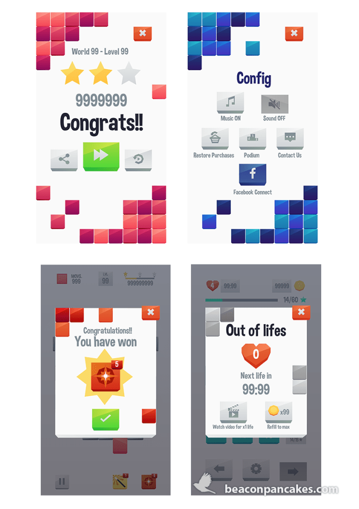 I made these mock-ups in Adobe Illustrator for a dismissed puzzle game by HeYou Games. The game was an iteration of a previous game called LikWit, and a small team worked on it for a couple of months. We wanted a clean and smart-looking style for the game, keeping everything minimalist but beautiful.