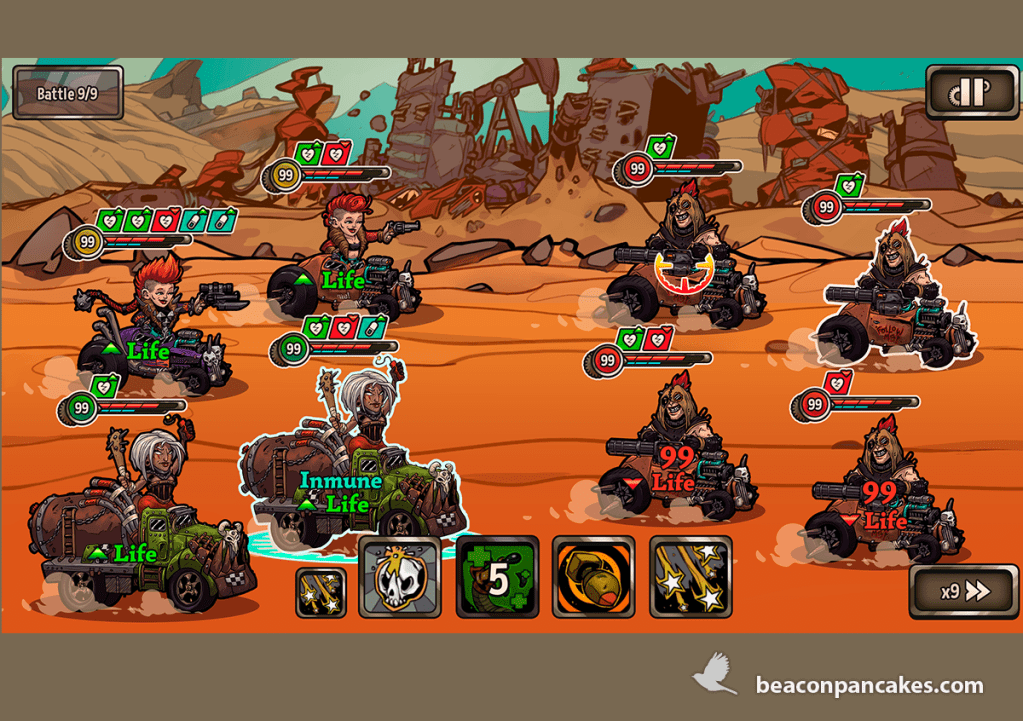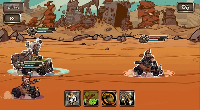 It was a Mad Max movie-inspired game, where you led a group of warriors in their vehicles in the fighting for more fuel in a post-apocalyptic world. It was a fascinating concept, and we counted on superb art and exceptional artists and programmers. My main goal was to create a beautiful and functional UI. Since there was already a clear art direction, I had to adapt to that style, and I oriented all the art to look like a mix between clean vectors and a handpainted style. I was very interested in using vectors like the previous one because of the cleanliness and scalability. I also wanted some innovation, so I chose to use a lot of hand-drawing, transparency, and gradients.