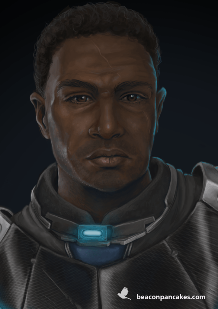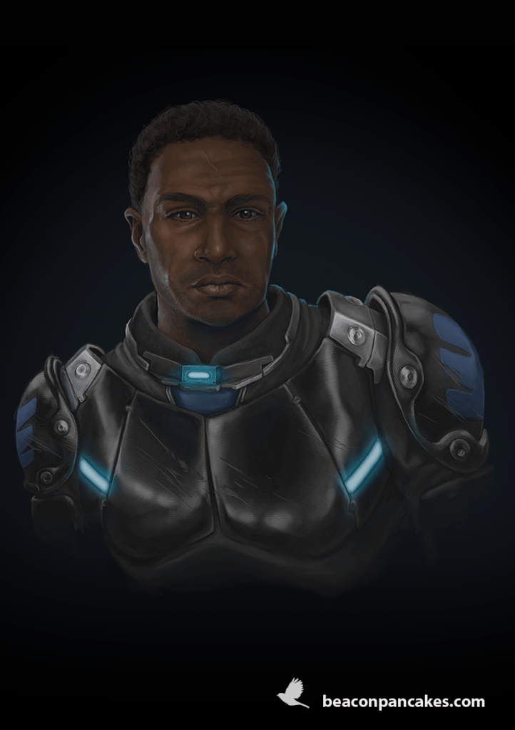 This one is a relatively quick concept art of a soldier from a futurist world with his spacesuit! It is a sample of how I can paint in 2D like it was a 3D model. I have always loved to paint this way because I can play with many different textures and lights. I am happy with the result (although he ends by the chest…) and the character’s mood.