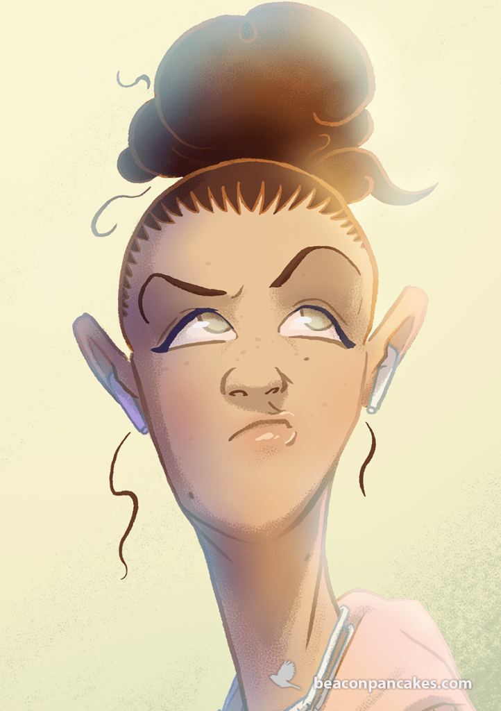 A couple of days ago, I had just finished some art, and I was thinking of starting something to work on in-between other projects. I started sketching in Photoshop, and I immediately loved the doodle. It was funny, simple, and pleasant. I quickly cleaned the line, paying attention to their movement and flow and wondering how to innovate a little bit this time. Since everything was so quick, I just let myself go. So, I added some general color (red-green complementary, desaturated) and decided to add color to the line too. I started to put color accents with some gradients and chose to add texture to the shadows… And it was finished!