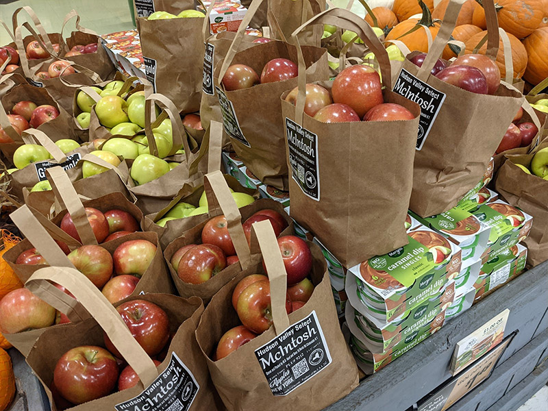 Por otro lado, las manzanas son bastante importantes por aquí. Está el famoso American Pie, claro, pero es que he oído incluso bromas acerca de cómo a la gente de New York y New England le encanta ir a recoger manzanas en otoño. Por supuesto, esto es una actividad por la que hay que pagar: las granjas locales tienen terrenos donde la gente paga para ir y cogerlas del árbol, y además venden sus productos como sidra, compota, o tartas. La verdad es que, pese a que sé que es un poco paripé, me llama la atención ir a una de estas granjas, (¡y más después de probar los zumos artesanales y los donuts de sidra, que son una maravilla!) así que intentaré ir este año. Me hace gracia ver que aquí las manzanas se prefieren muy dulces. Como dato, deciros que en el supermercado se suelen vender botes de caramelo junto a las manzanas (un poco a lo de la nata y las fresas que hacemos en España…).